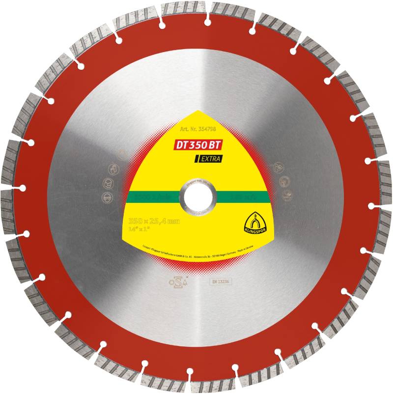 DT 350 BT Discuri diamantate de debitare, 400 x 3,6 x 25,4 mm 28 Segmente 40 x 3,6 x 10 mm, standard turbo
