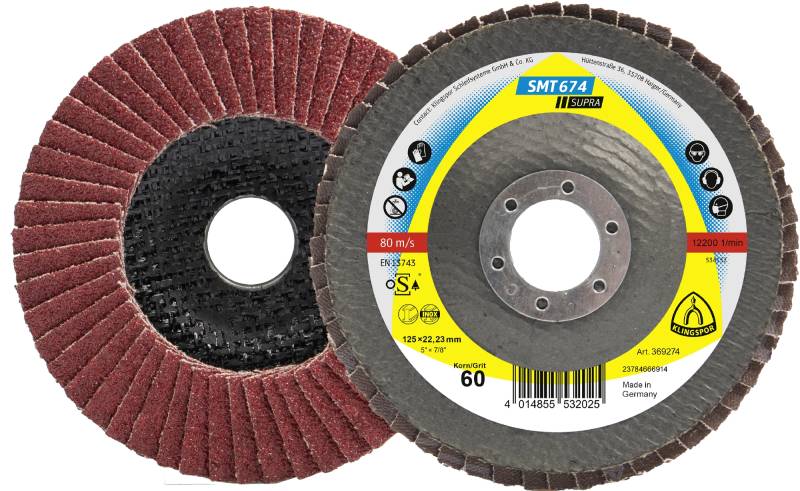 SMT 674 Discuri lamelare frontale ceramic, 125 x 22,23 mm Granulă 40 Curbat