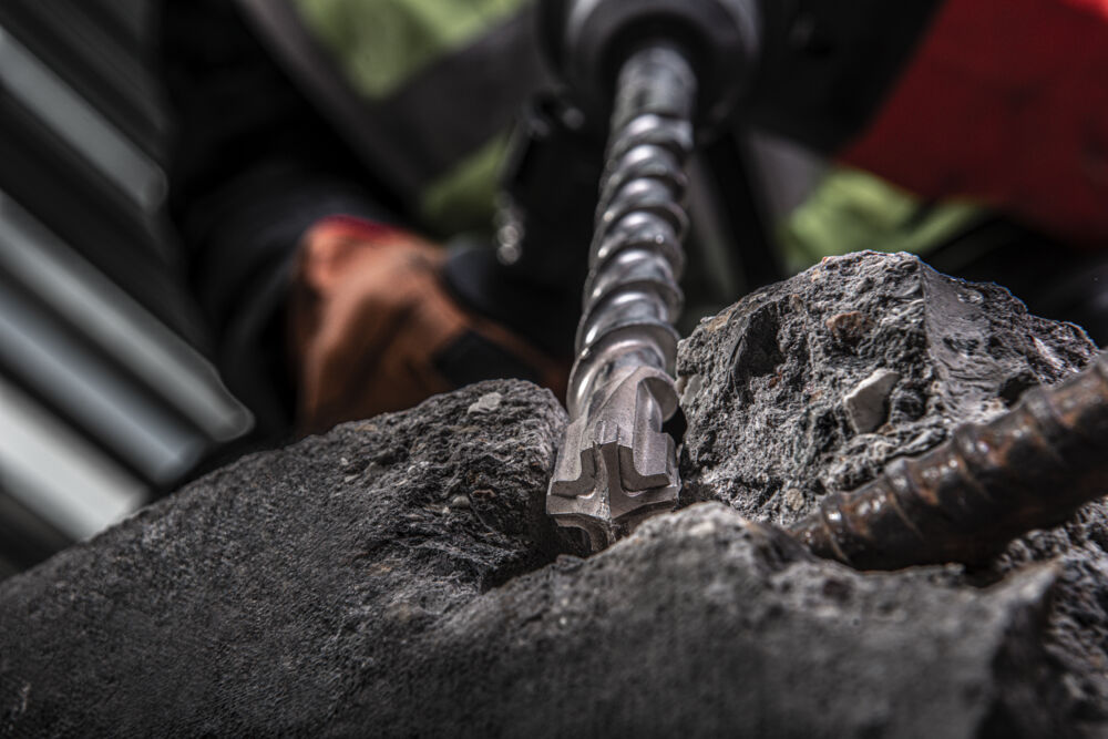 • Geometrie robustă a capului special concepută, cu o simetrie optimă a vârfului din carbură de 4 x 90°. Reduce riscul de blocare în armătura din oțel.