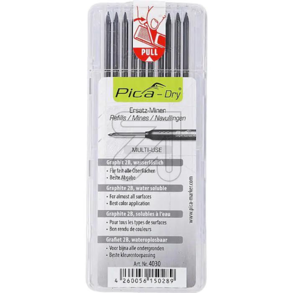 Setul include 10 mine negre din grafit 2B gata ascuțite - sunt compatibile cu creionul Pica Dry S